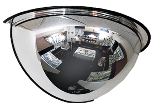 This half dome mirror offers a 180-degree wide-angle view, making it suitable for areas with multiple traffic directions.