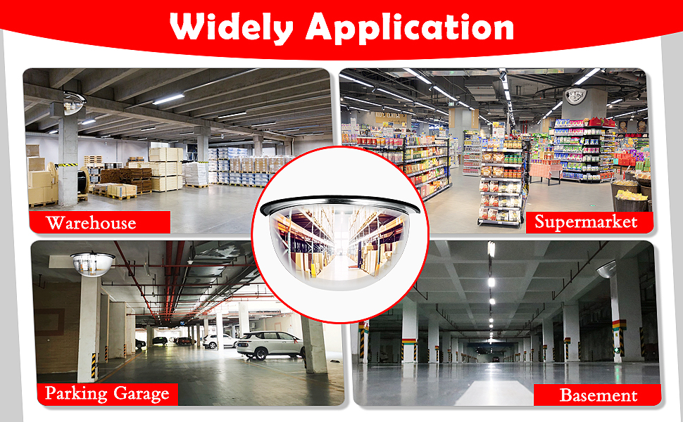 Install the mirror using ceiling mount brackets (included). Position at T-junctions, blind corners, or open spaces for optimal surveillance. Indoor use only.